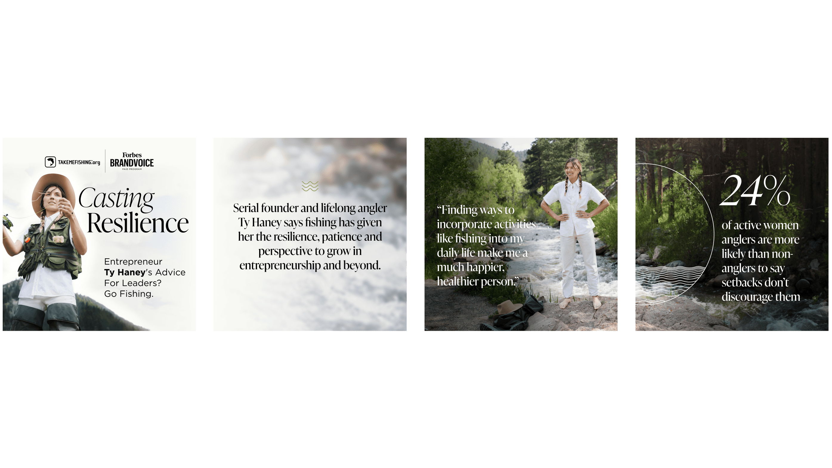 The Recreational Boating & Fishing Foundation came to Forbes with a specific story to tell: a successful woman entrepreneur with deep generational ties to fly fishing and how it's helped shape how she leads. The Forbes Content & Design Studio partnered with RBFF to feature Ty Haney, the founder of Outdoor Voices, and her personal story through a bespoke lander featuring custom photography, RBFF's research findings on mental health and leadership strategies, and moments of audio interactivity.